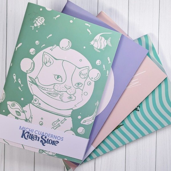 Un lugar muy hermoso donde anotar tus ideas, proyectos, tareas, dibujos y bocetos. Michi cuadernitos con diseños propios ilustrados.